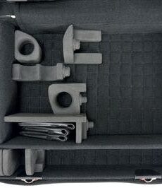 Etui för 3 klarinetter (A, B och Ess) med utrymme för 4 päron. MBs etuier för träblåsinstrument är utformade så att instrumenten inte utsätts för tryck. Etuiet har en löstagbar ryggsäcksdel för kläder mm, perfekt för kortare resor. Ryggsäcksdelen är expanderbar med 5cm och har 2 fickor utanpå för accessoarer.
