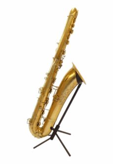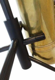 WoodWindDesign’s nya kolfiberstativ för bassaxofon är extremt stabilt tack vare de fyra benen med gummifötter och den speciellt utformade klockhållaren. Klockhållaren passar perfekt med formen av själva klockan och har därför en stor kontaktyta med klockan. Eftersom denna kontaktyta är klädd med äkta gummi (inte skumgummi) är greppet på instrumentet perfekt. Om du måste byta instrument mycket snabbt och placerar instrumentet i stället i en obekväm position kommer instrumentet att stanna i den positionen och inte glida vidare eller luta sig. De två lägre benen på stället är klädda med gummi för extra grepp och skydd.